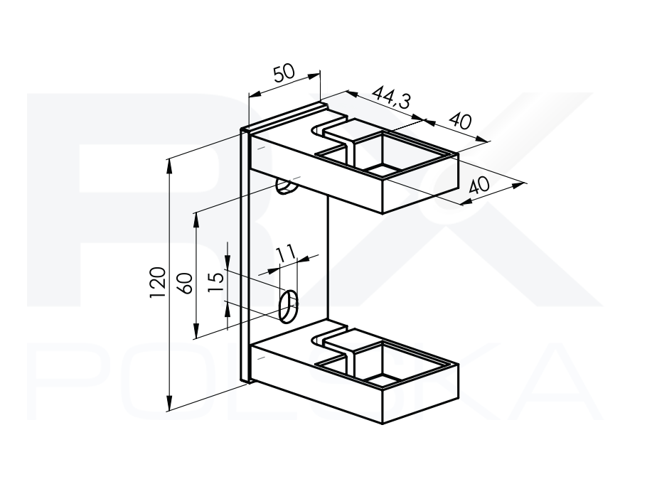 - Монтажные фасонные отверстия - 2x11x15мм