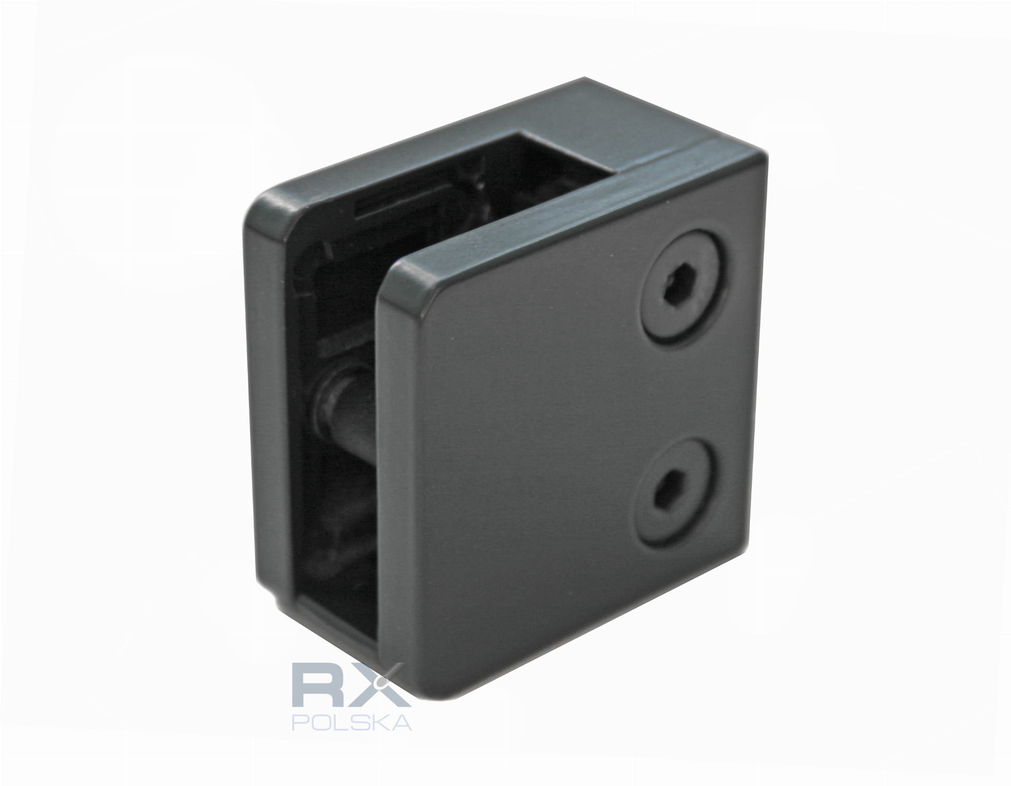 Держатель для стекла 45х45мм с предохраняющей бляшкой, ZAMAK, RAL 7016