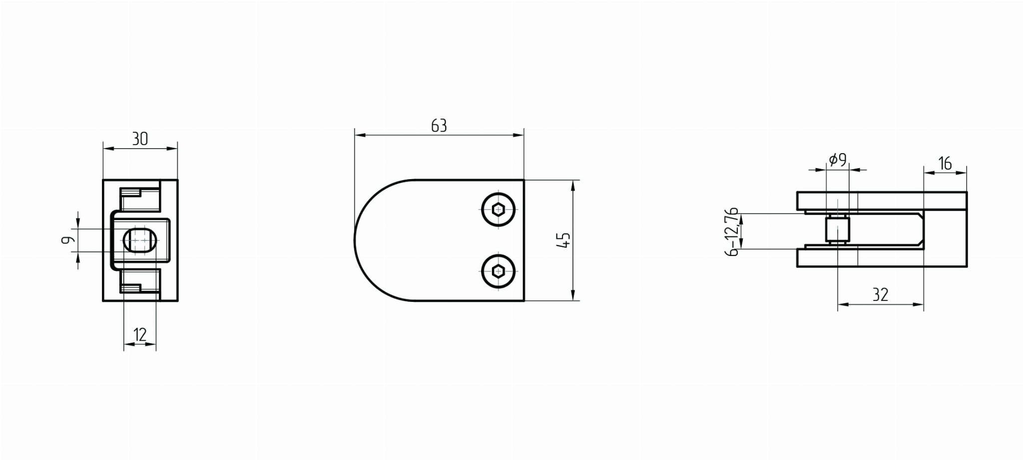Держатель для стекла 45х63мм, AISI 304, ПОЛИР