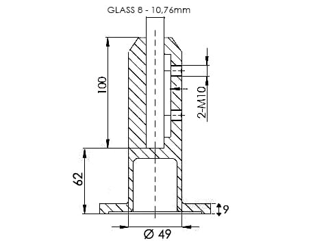 Держатель стекла с креплением к полу SPIGOT 48/159, стекло 8-10.76 AISI 304, RAL 9005 mat