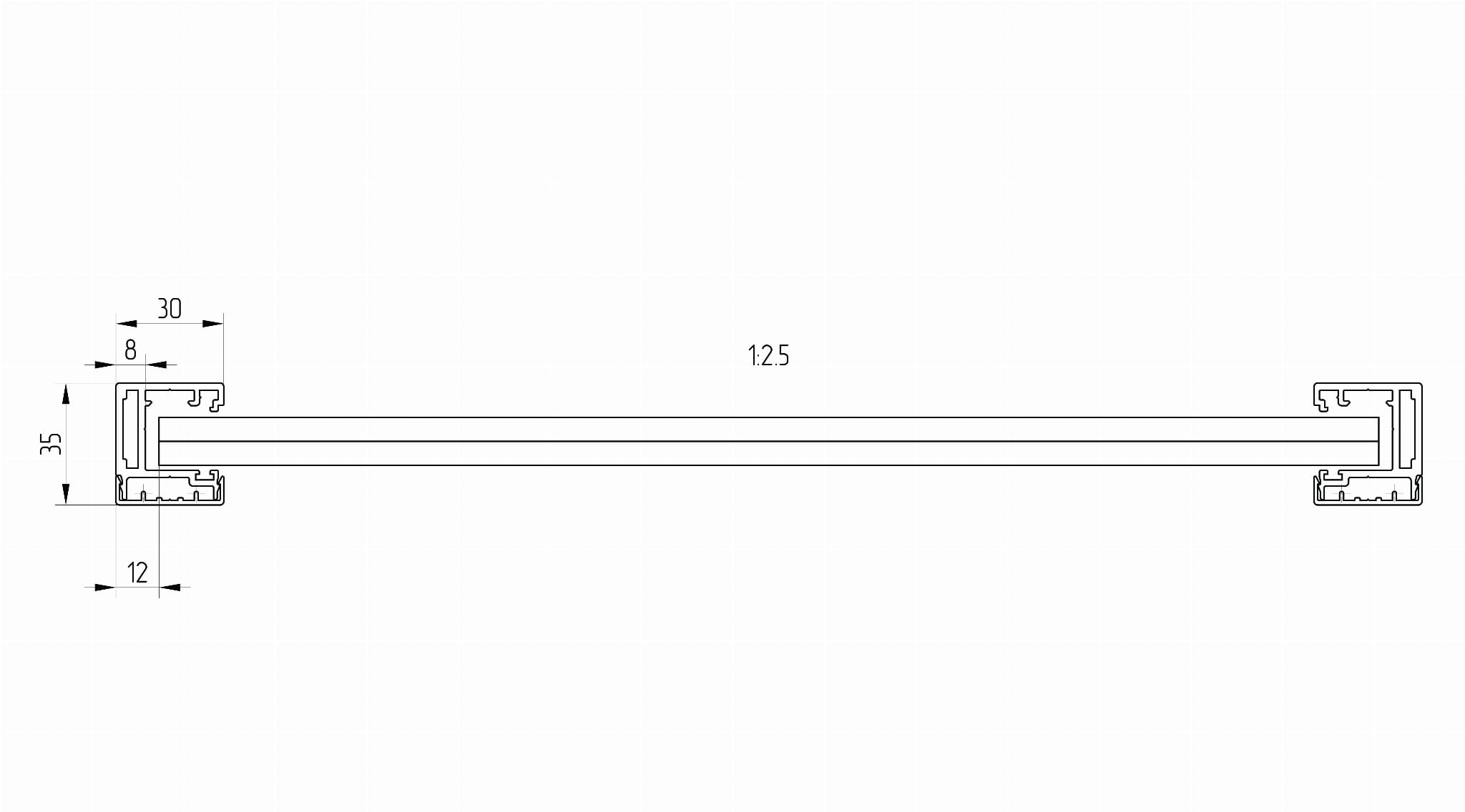 2шт - основной профиль, L= 1150 мм (профиль не имеет крепежных отверстий)