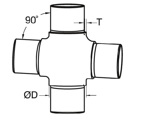 Крестовина для трубы 42,4 mm (X-подобная), AISI 304, ШЛИФ