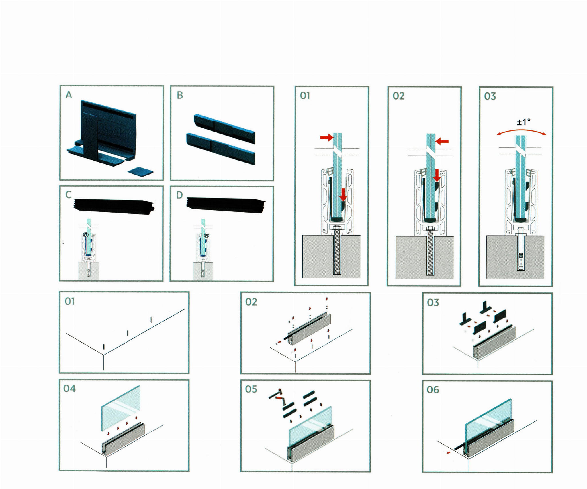 - Прокладка (1м) и клин (3 шт.) - для регулировки толщины стекла