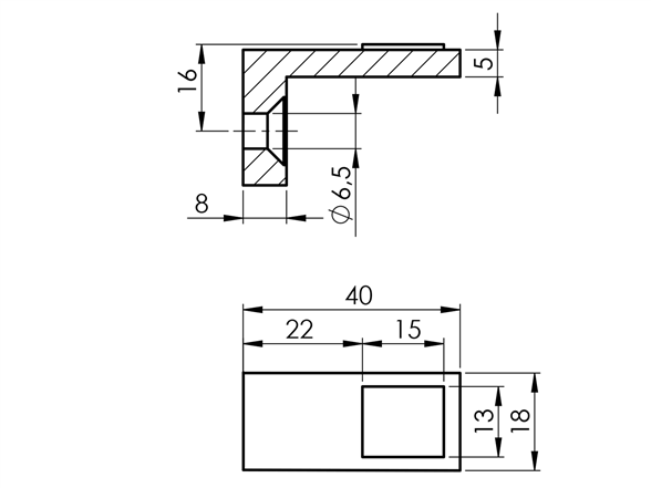 - Монтаж с помощью винта DIN 7991 M6 или M5 (крепежный винт в комплект не входит)