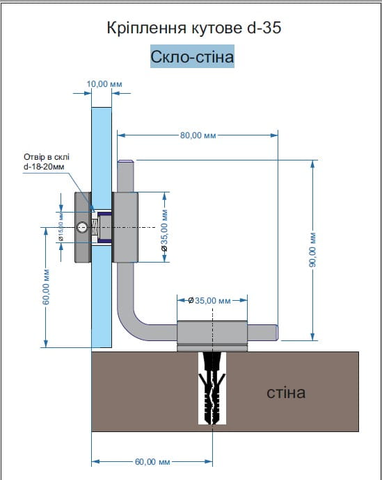 - Точечная фиксация стекла на стержне 160mm (80 + 80), диаметр 8mm