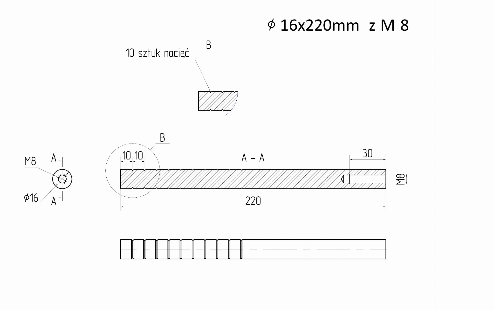 - С одной стороны отделан внутренней резьбой M8x30 мм