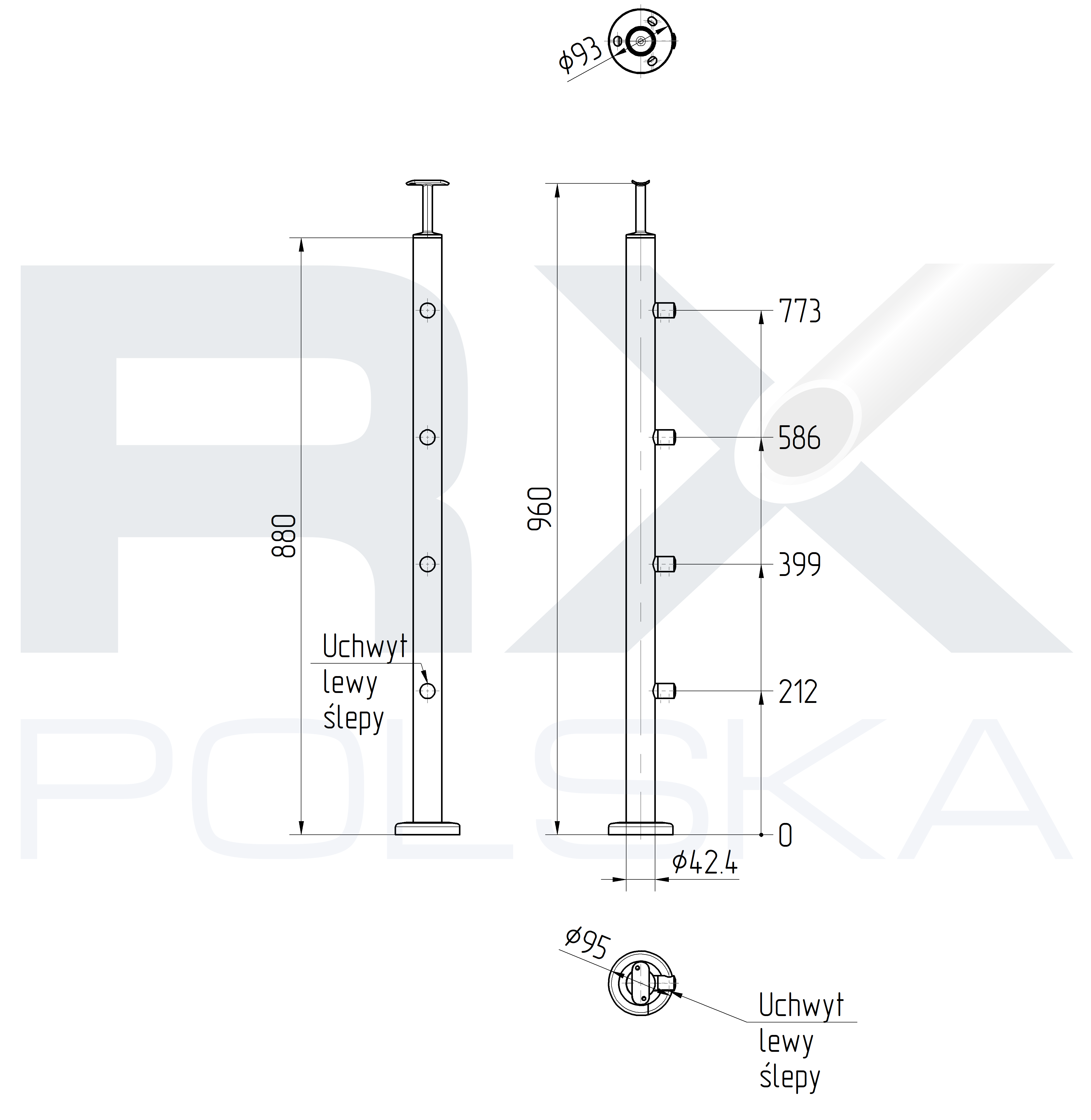 - Высота столба 960мм / 1060мм - выберите вариант *