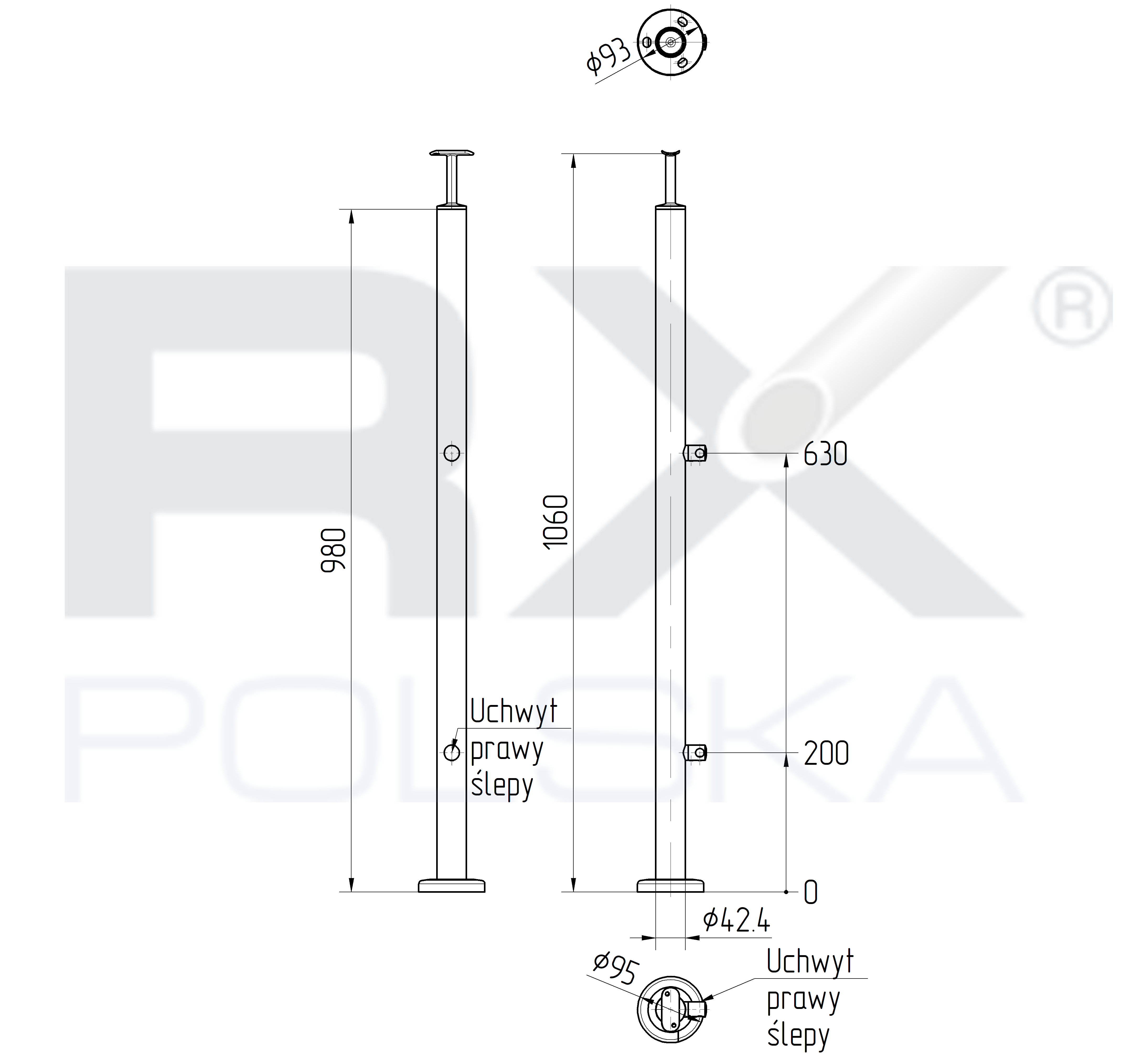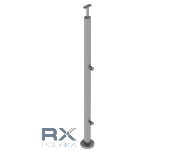 Столбик ПРАВЫЙ 42,4мм с 2 ригелями на трубу 12мм, AISI 304, ШЛИФ