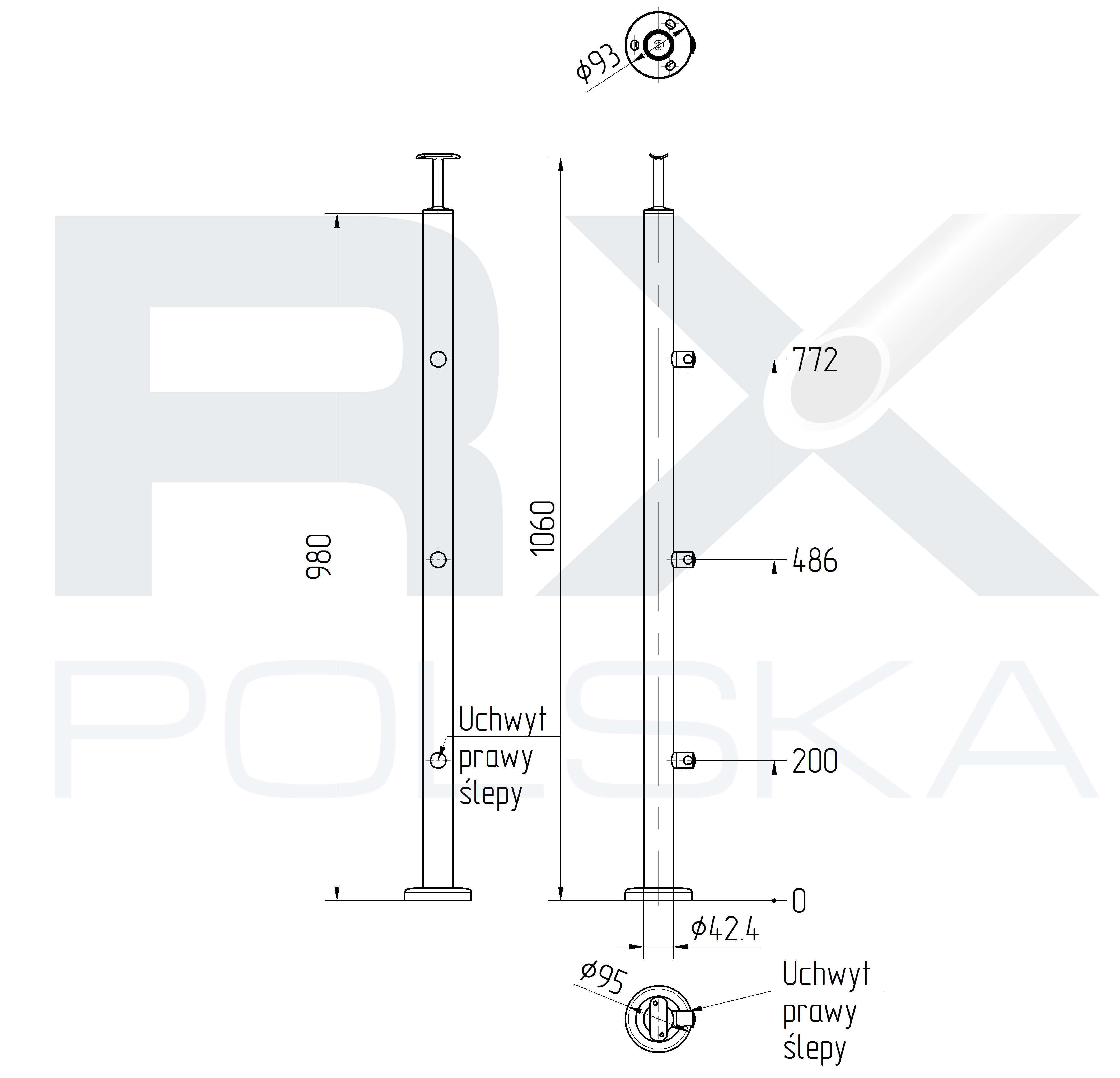 - Высота столба 960мм / 1060мм - выберите вариант *