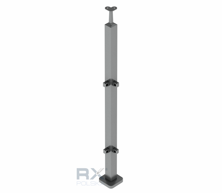 Столбик 40x40мм с 2 ригелями угловой на профиль 10мм, AISI 304, ШЛИФ