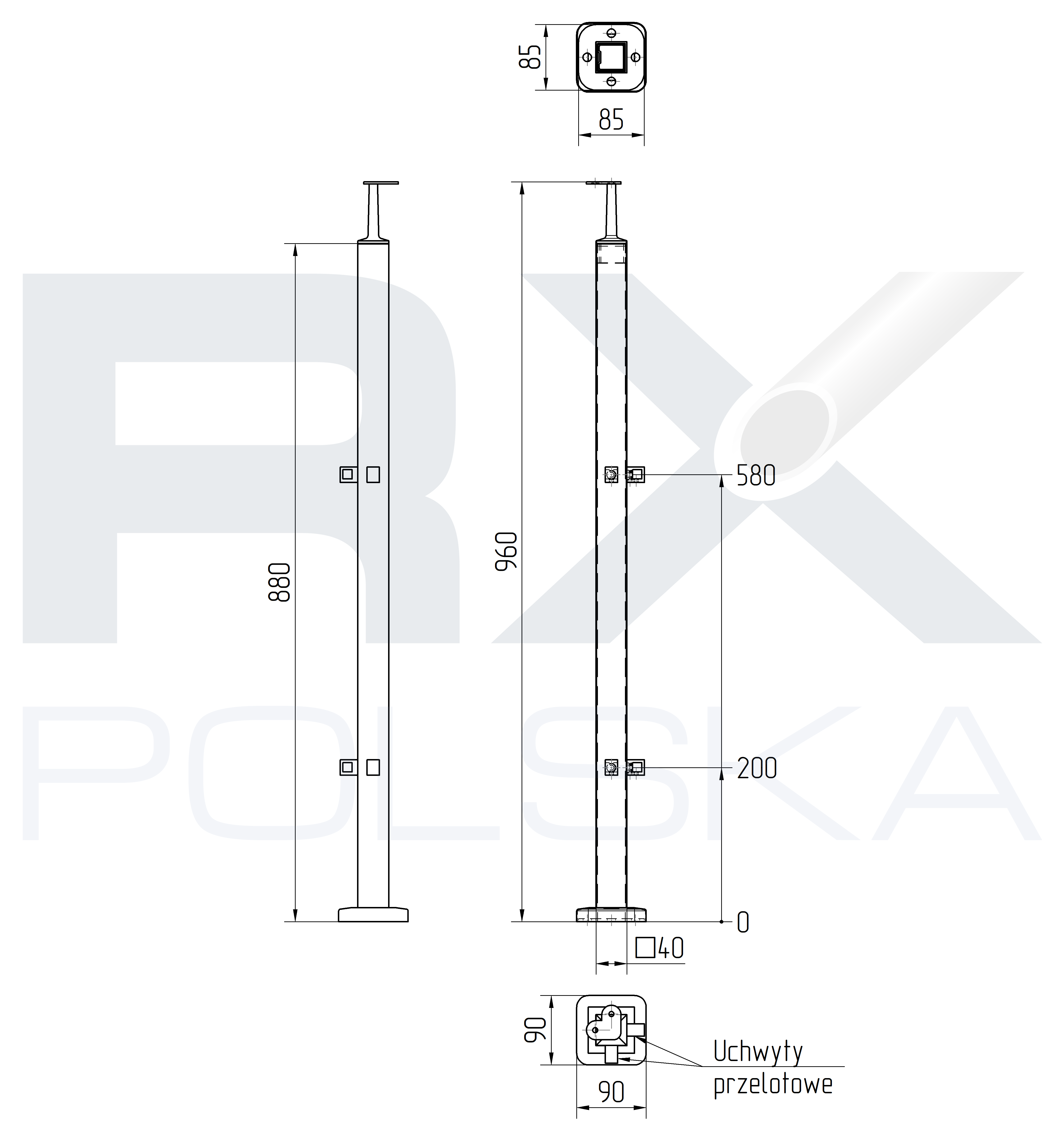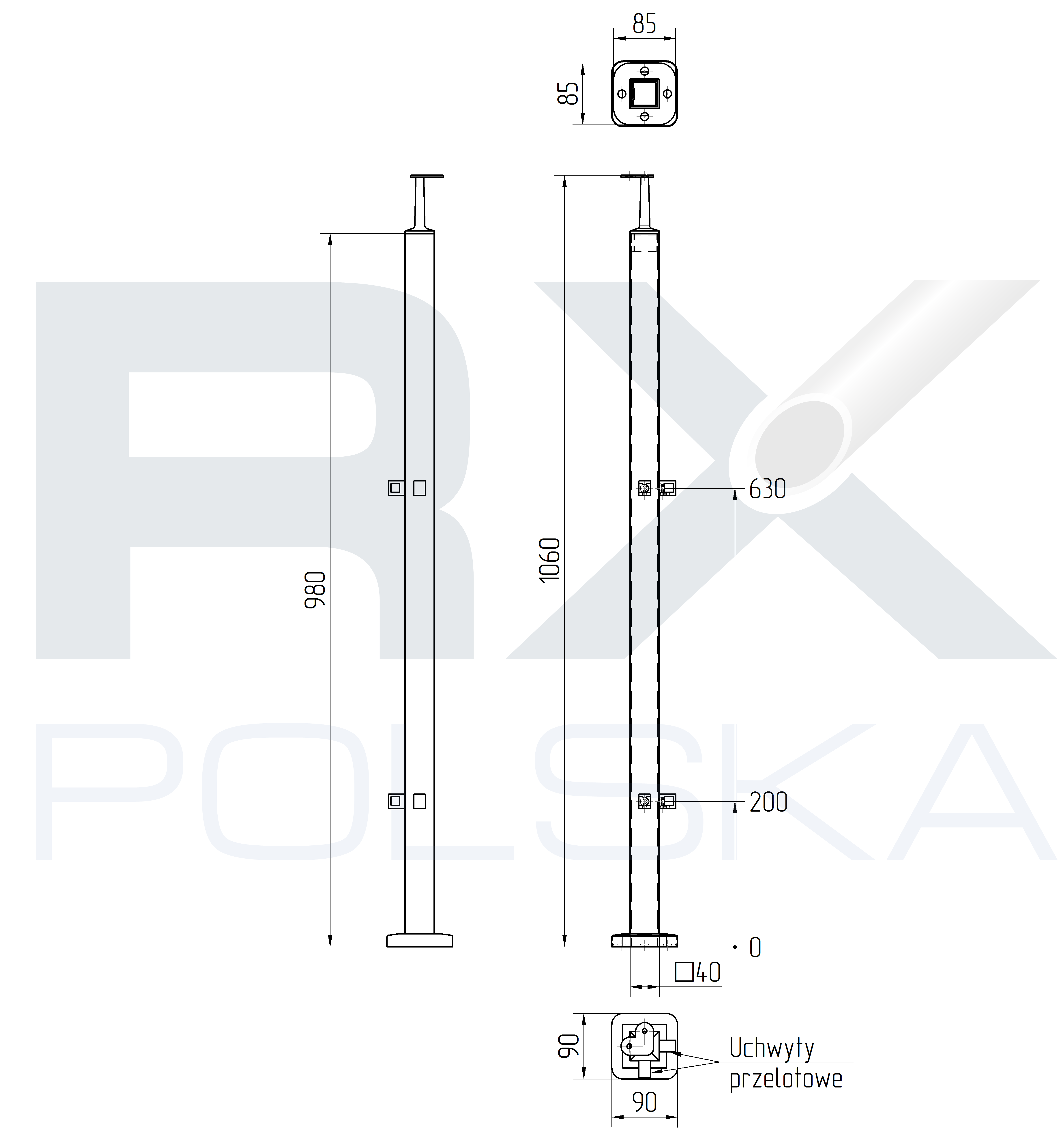 - Основание - 85x85x4 мм, 4 отверстия для крепления к стержню M10 макс.