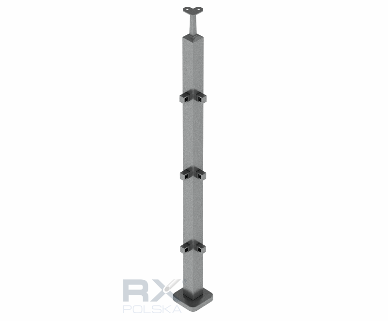 Столбик 40x40мм с 3 ригелями угловой на профиль 10мм, AISI 304, ШЛИФ