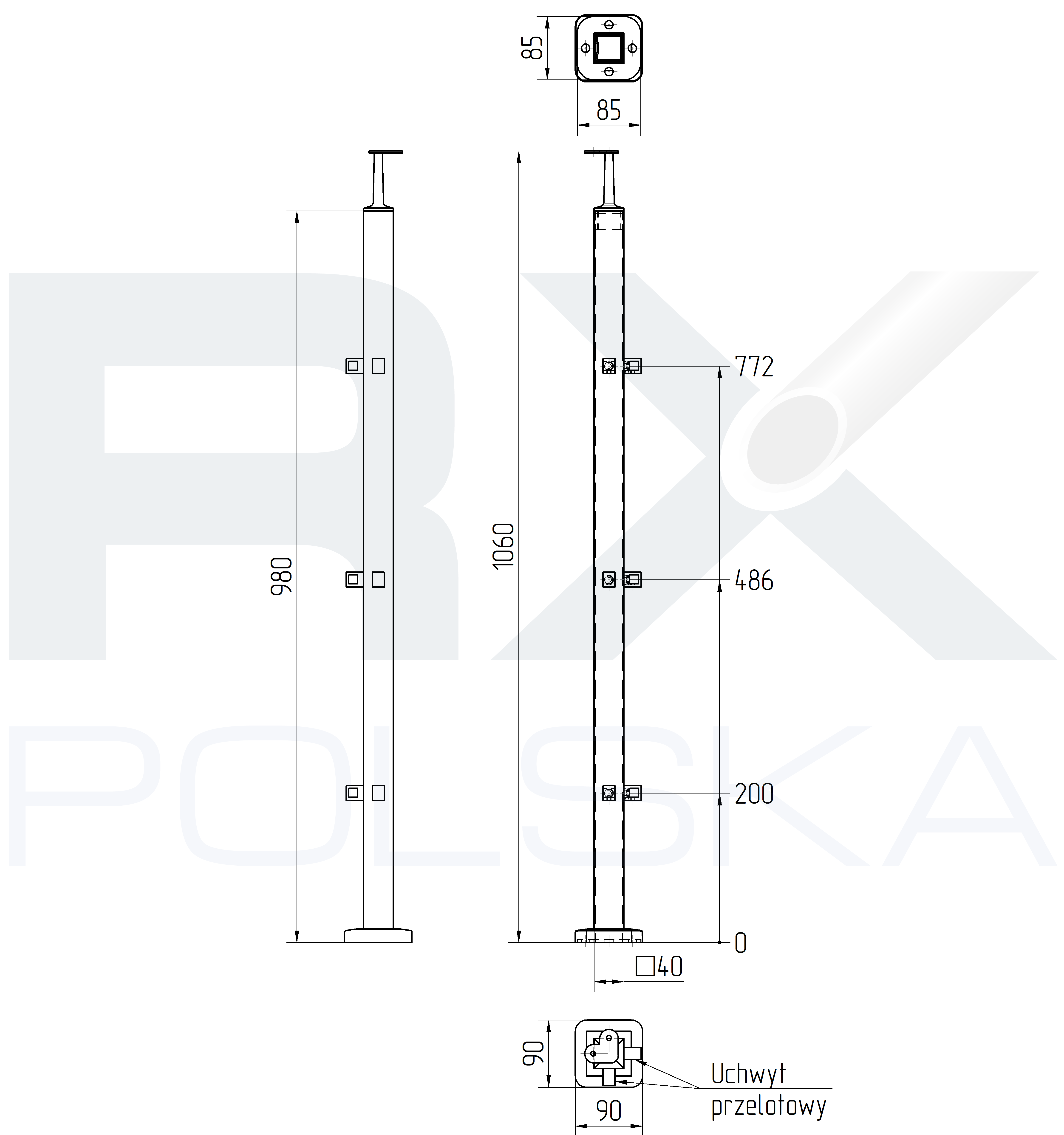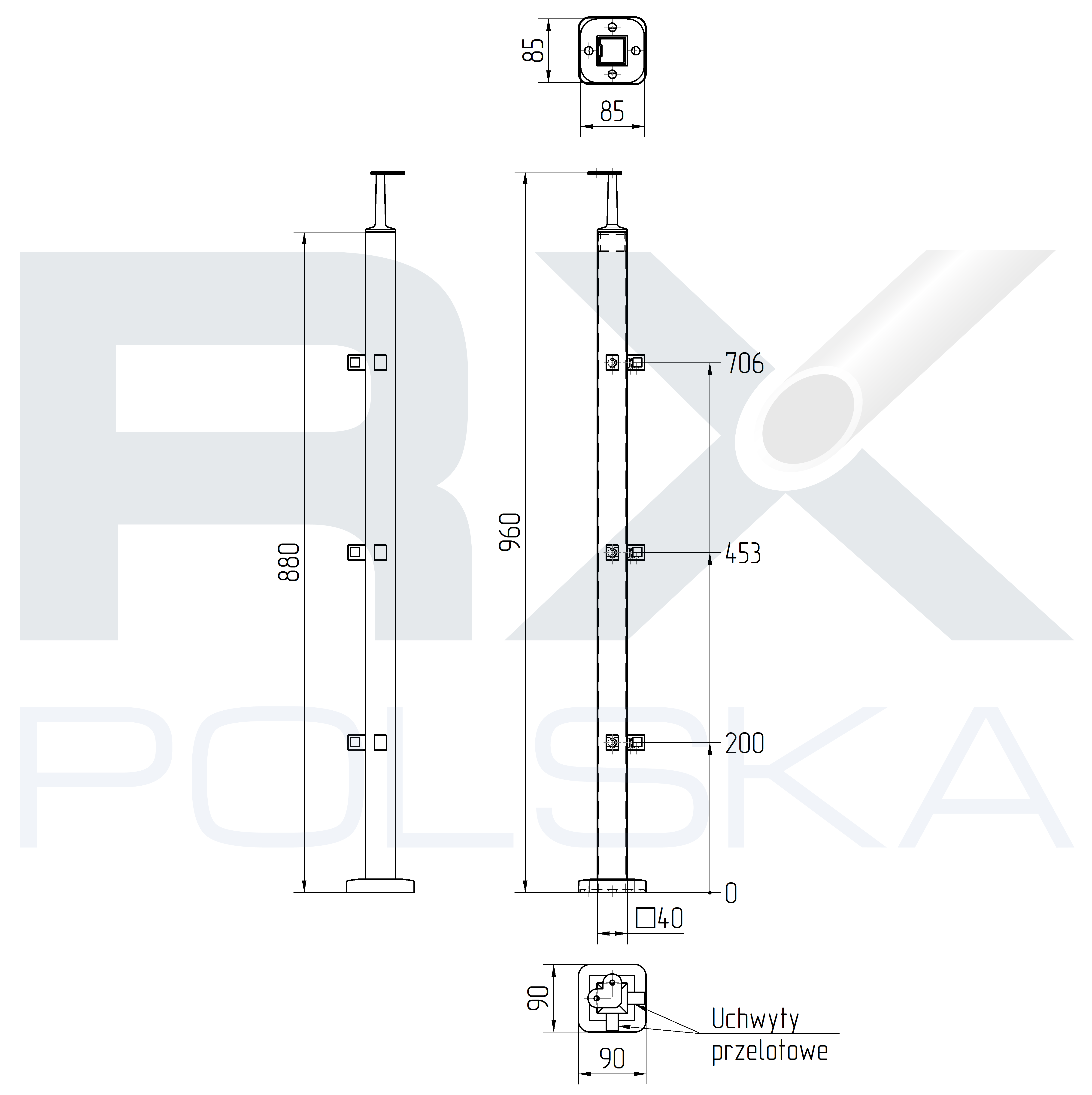 - Столб изготовлен из профиля 40x40x2 мм.