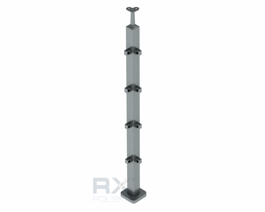 Столбик 40x40мм с 4 ригелями угловой на профиль 10мм, AISI 304, ШЛИФ