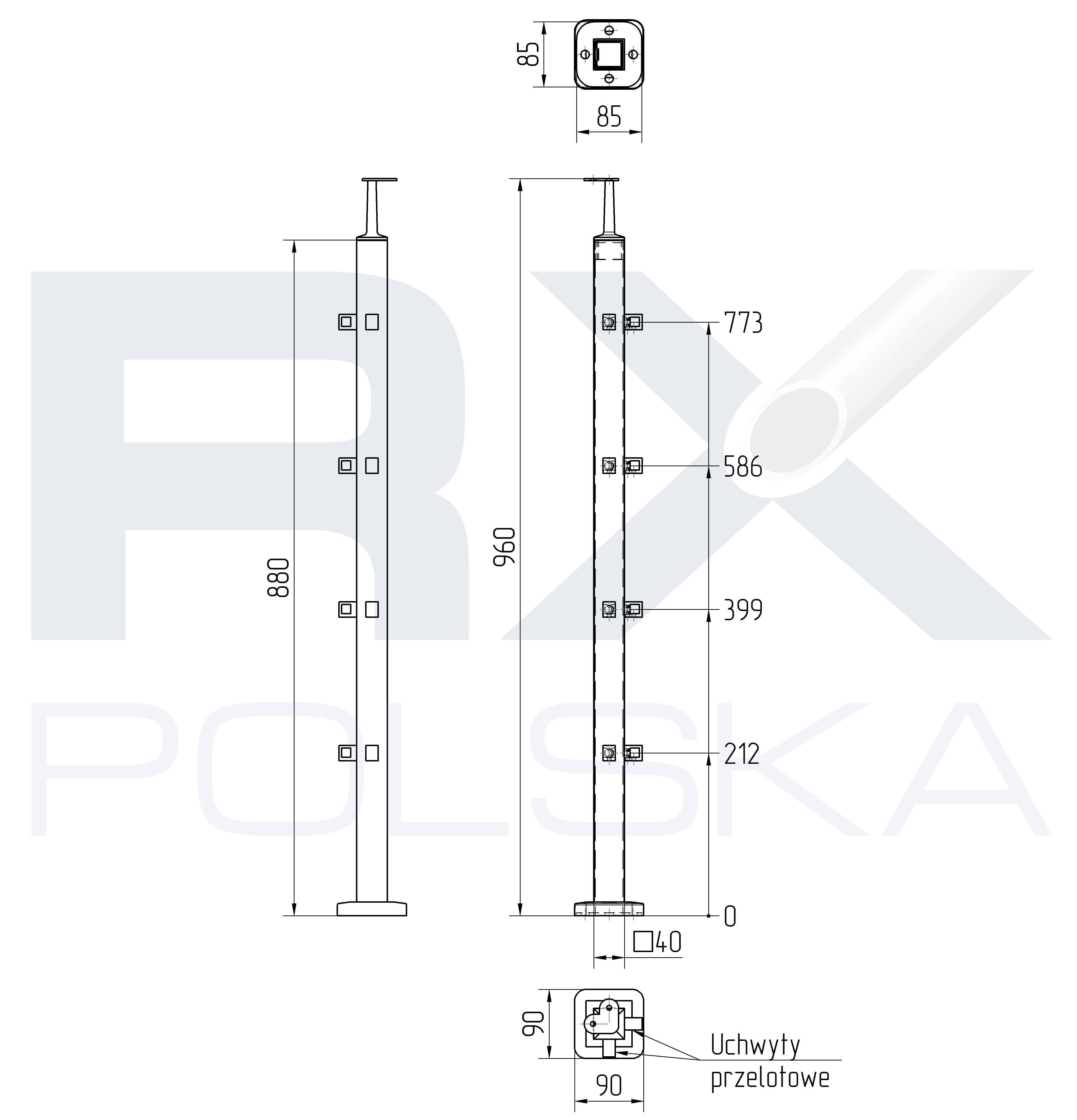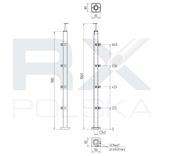 - Столб изготовлен из профиля 40x40x2 мм.