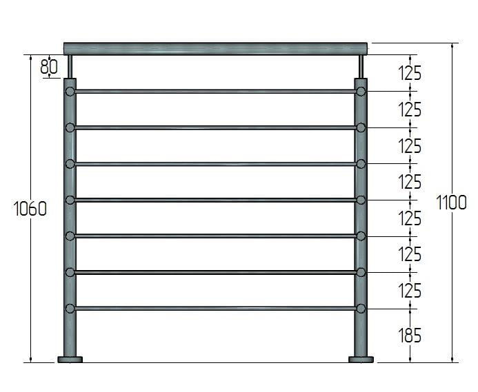 Столбик 42,4мм с 7 ригелями на трубу 12мм, AISI 316, ШЛИФ