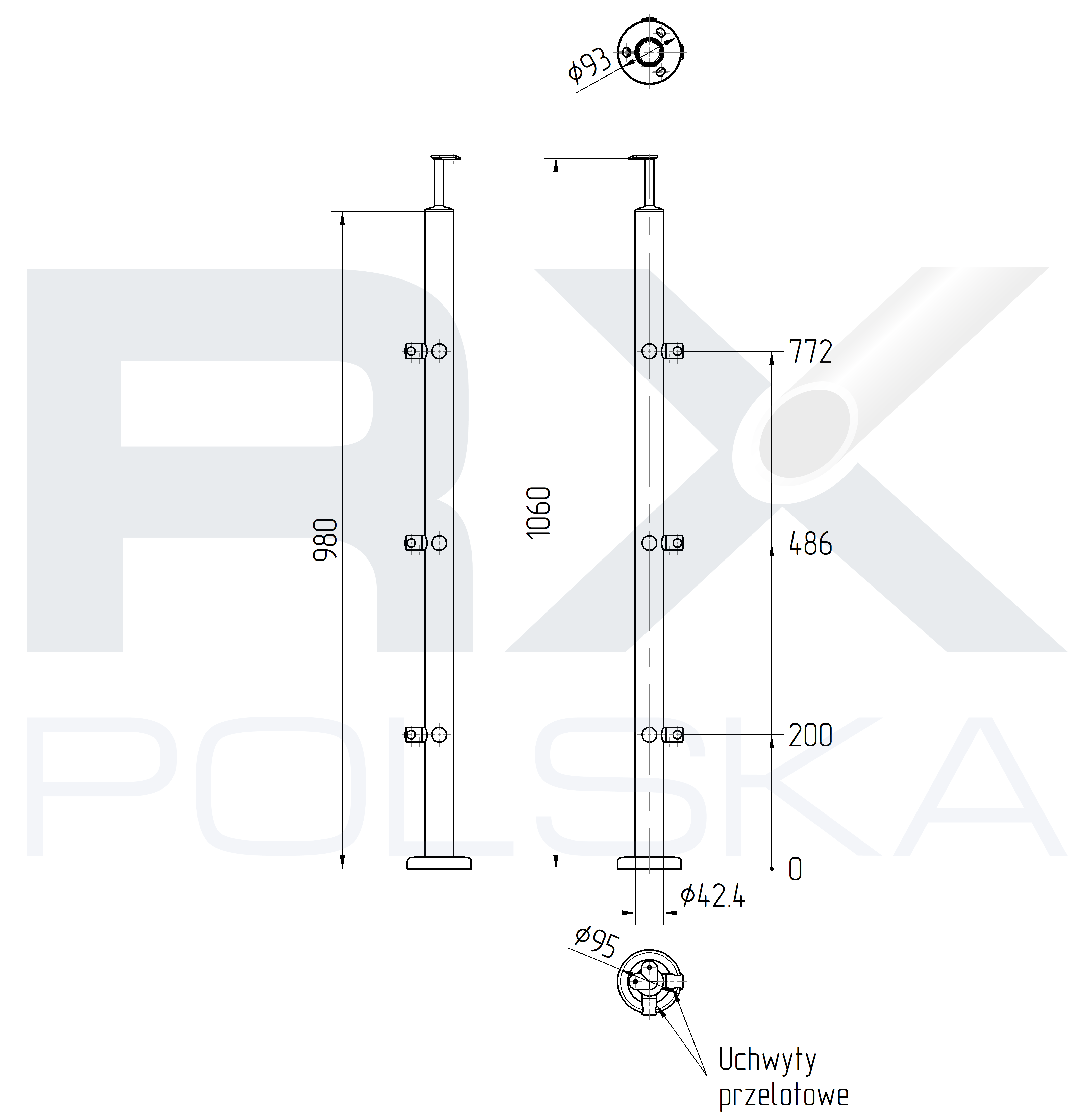 - Основание - fi 93x4 мм с 3 отверстиями для крепления к штанге, макс. M10
