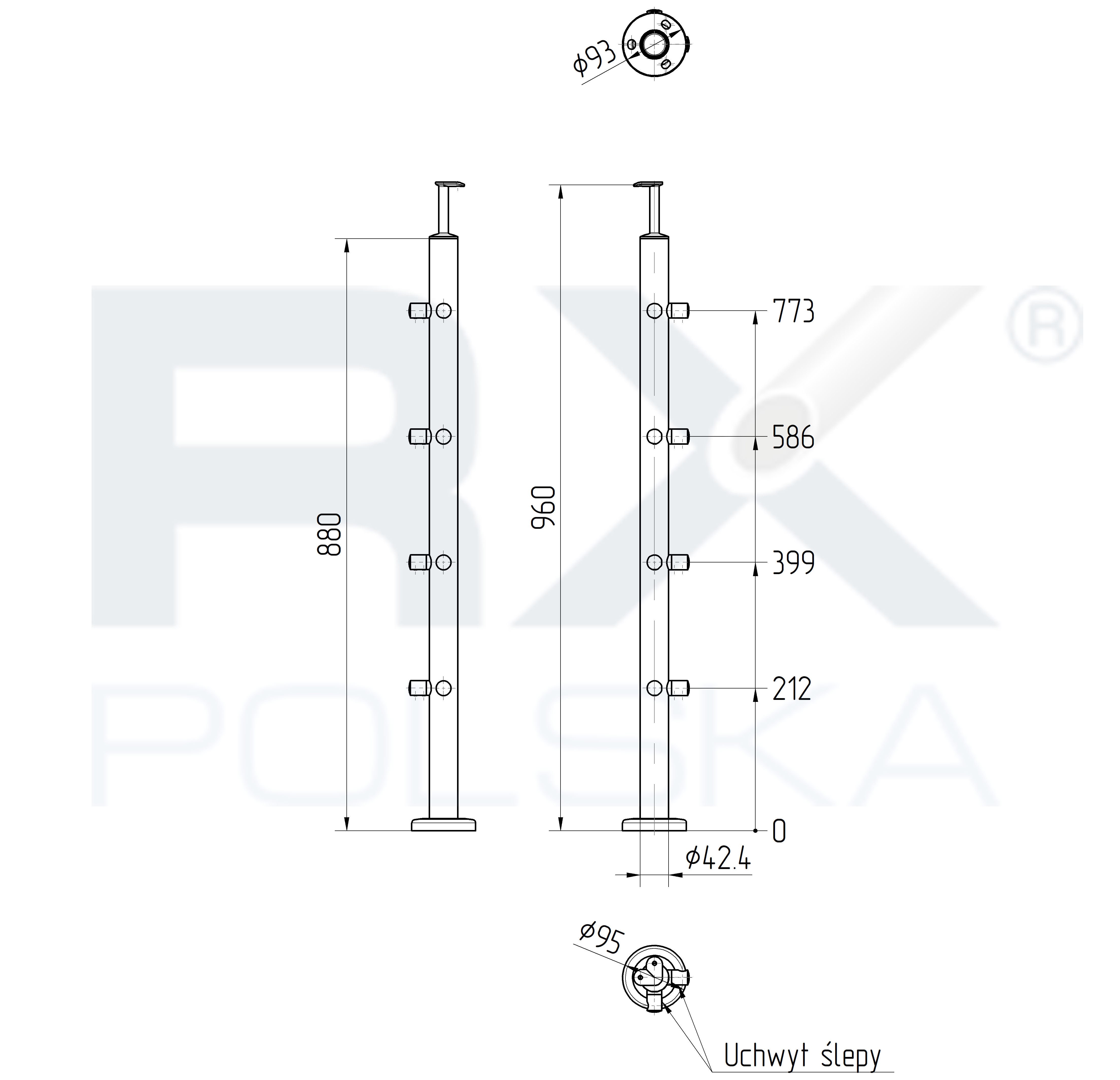- Высота столба 960мм / 1060мм - выберите вариант *