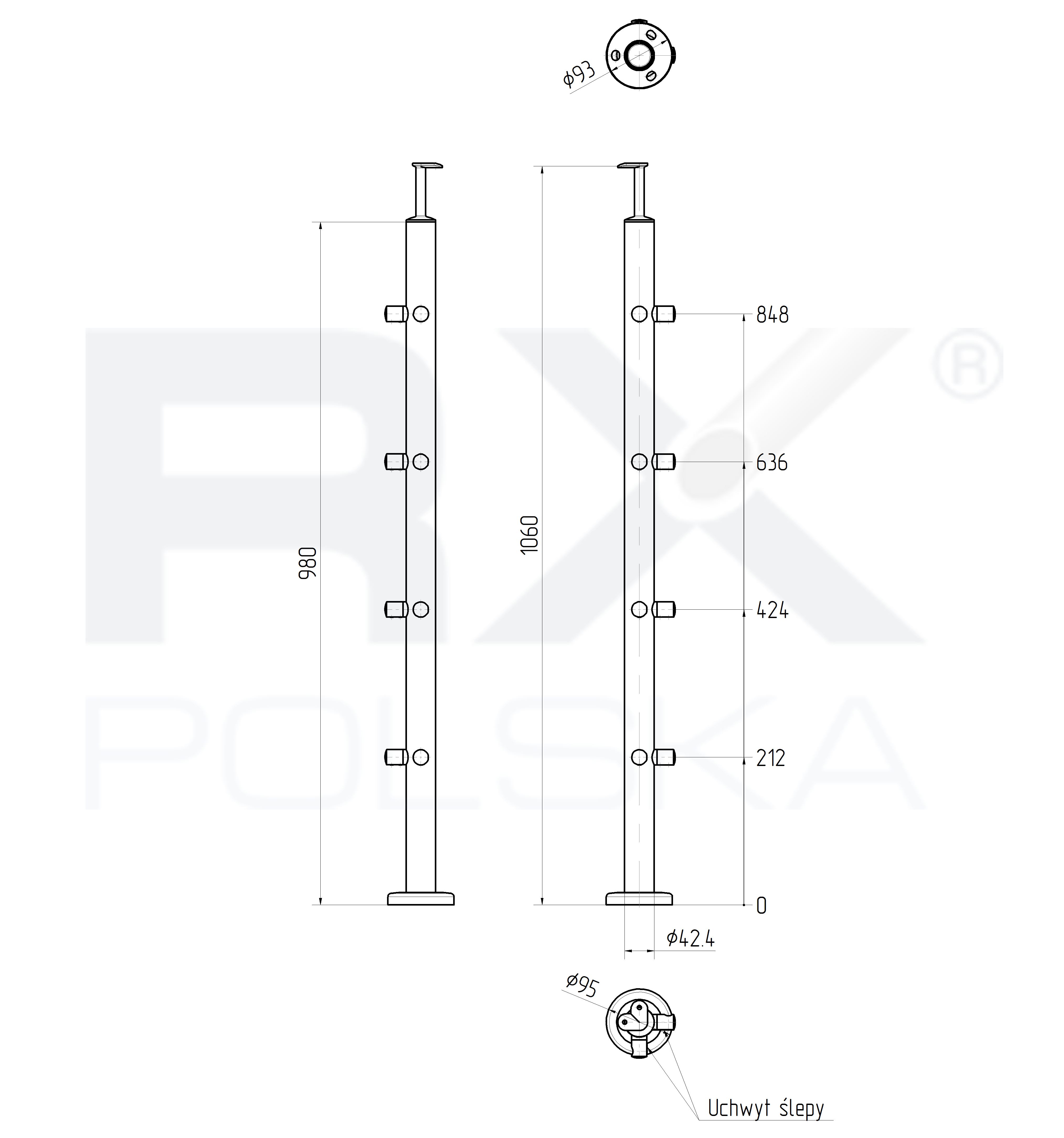 - Основание - fi 93x4 мм с 3 отверстиями для крепления к штанге, макс. M10
