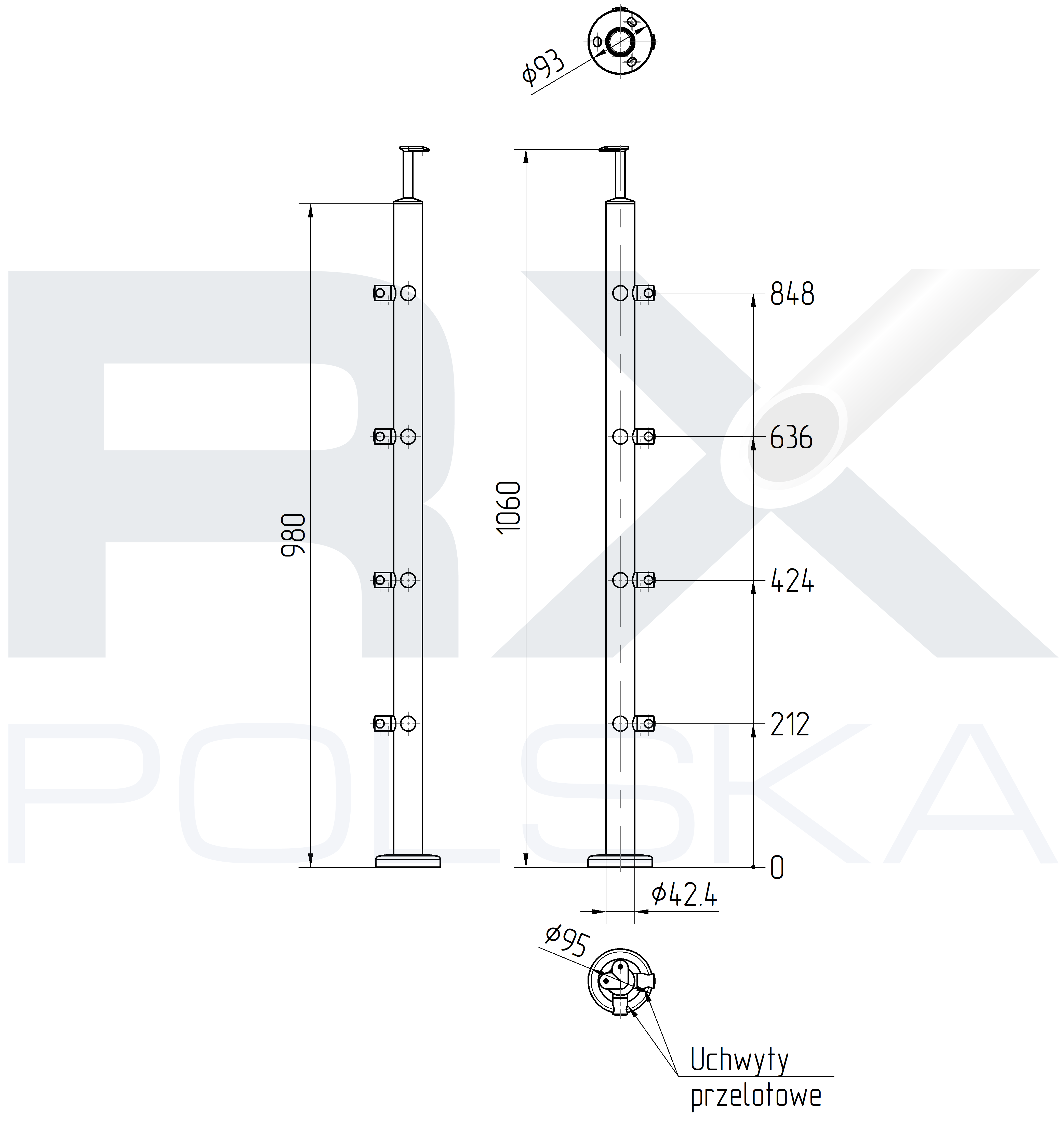 - Основание - fi 93x4 мм с 3 отверстиями для крепления к штанге, макс. M10