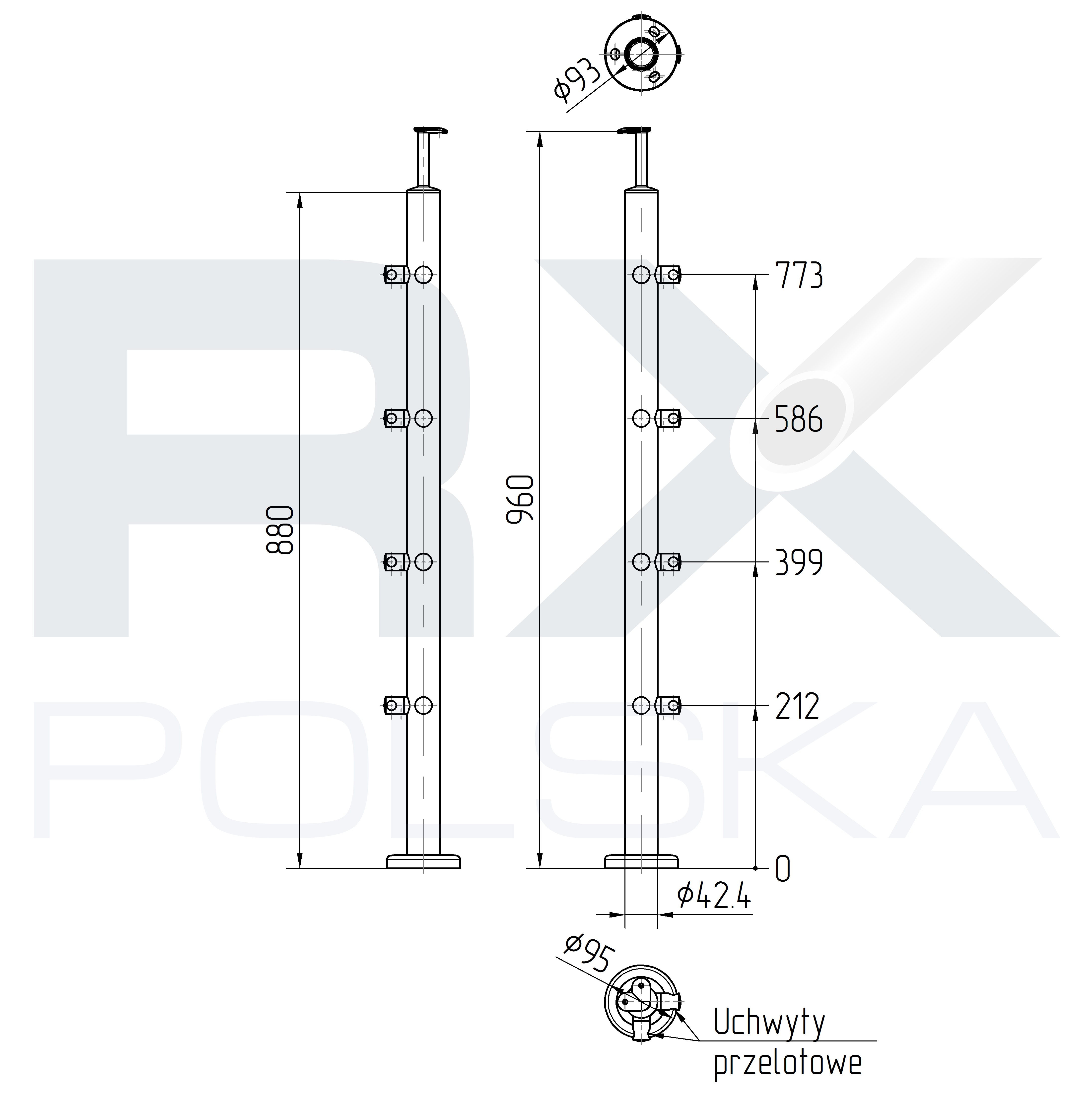 - Основание - fi 93x4 мм с 3 отверстиями для крепления к штанге, макс. M10