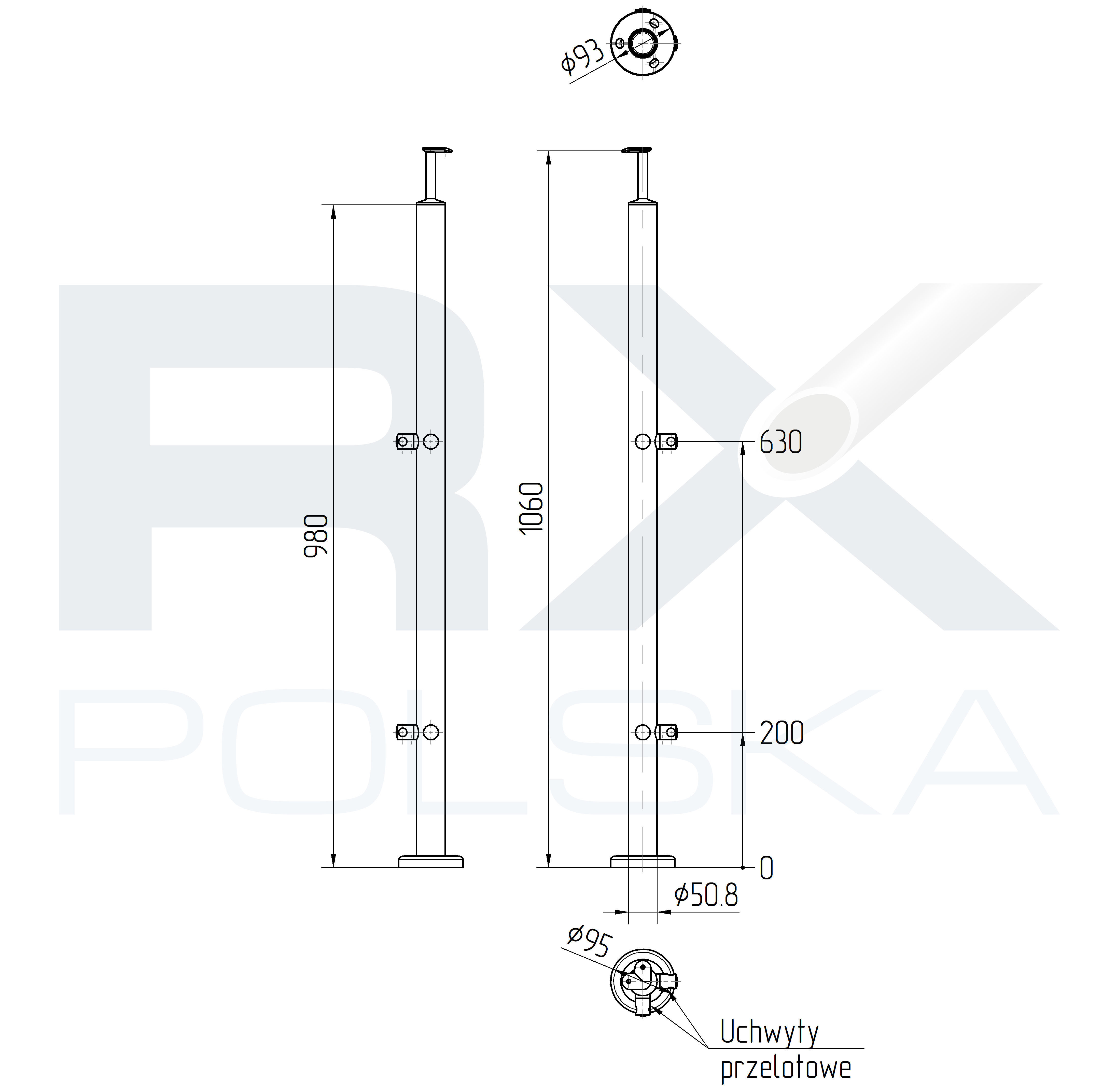 - Основание - fi 93x4 мм с 3 отверстиями для крепления к штанге, макс. M10
