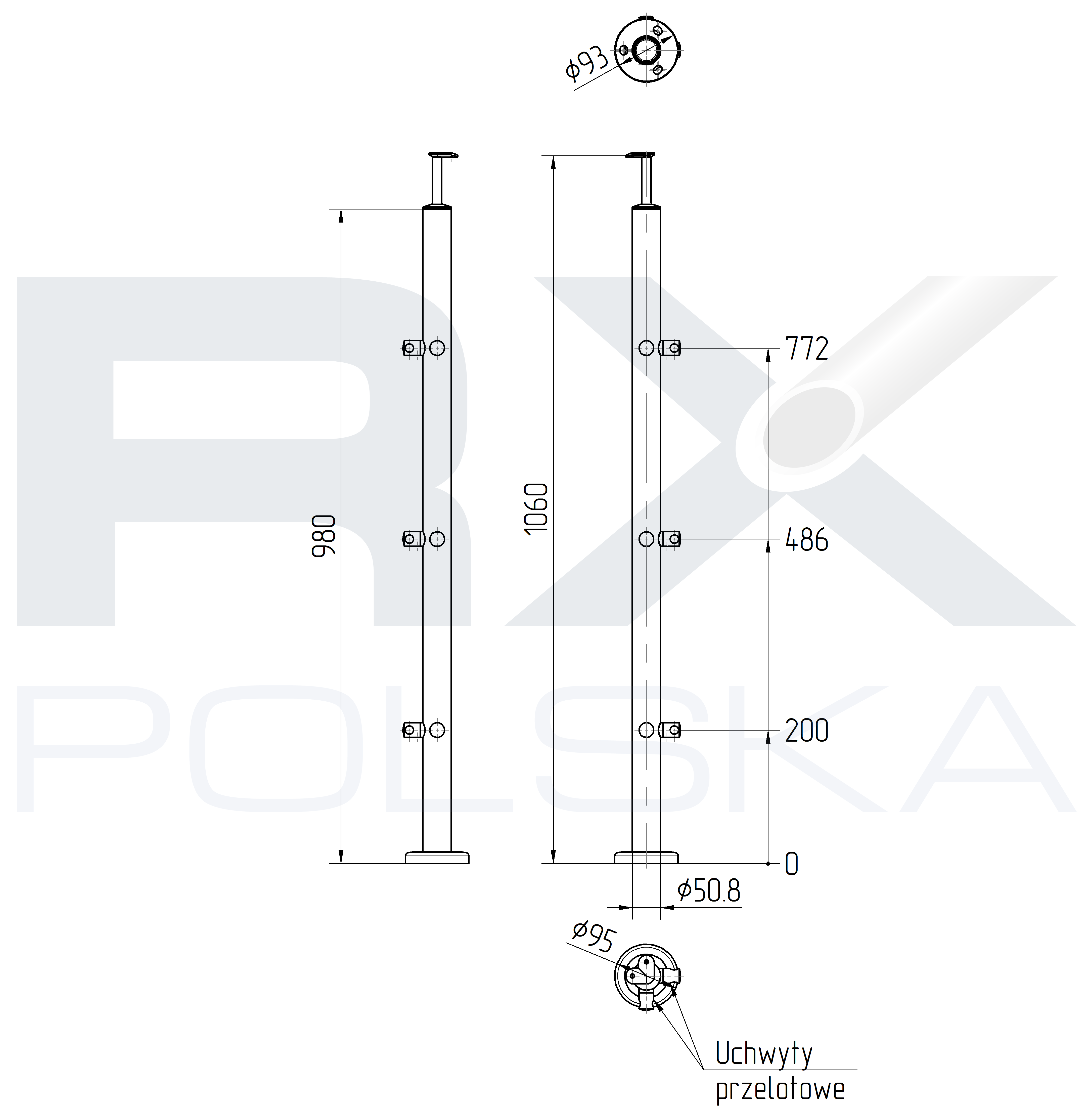 - Основание - fi 93x4 мм с 3 отверстиями для крепления к штанге, макс. M10