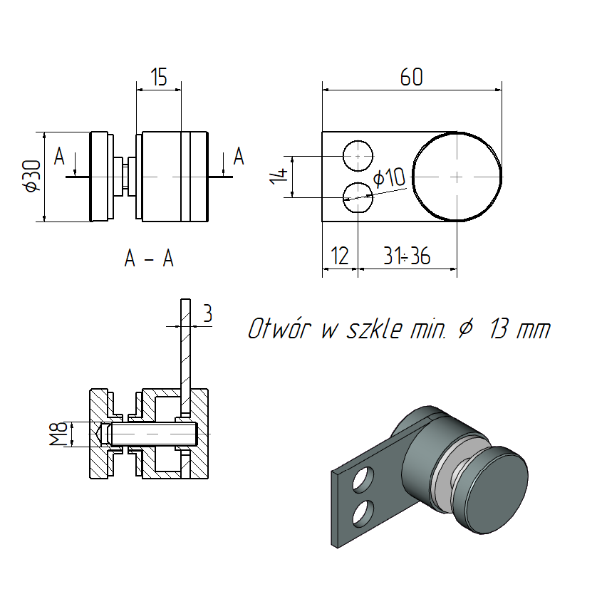 • Точечная фиксация стекла на плоской поверхности 60х30 мм