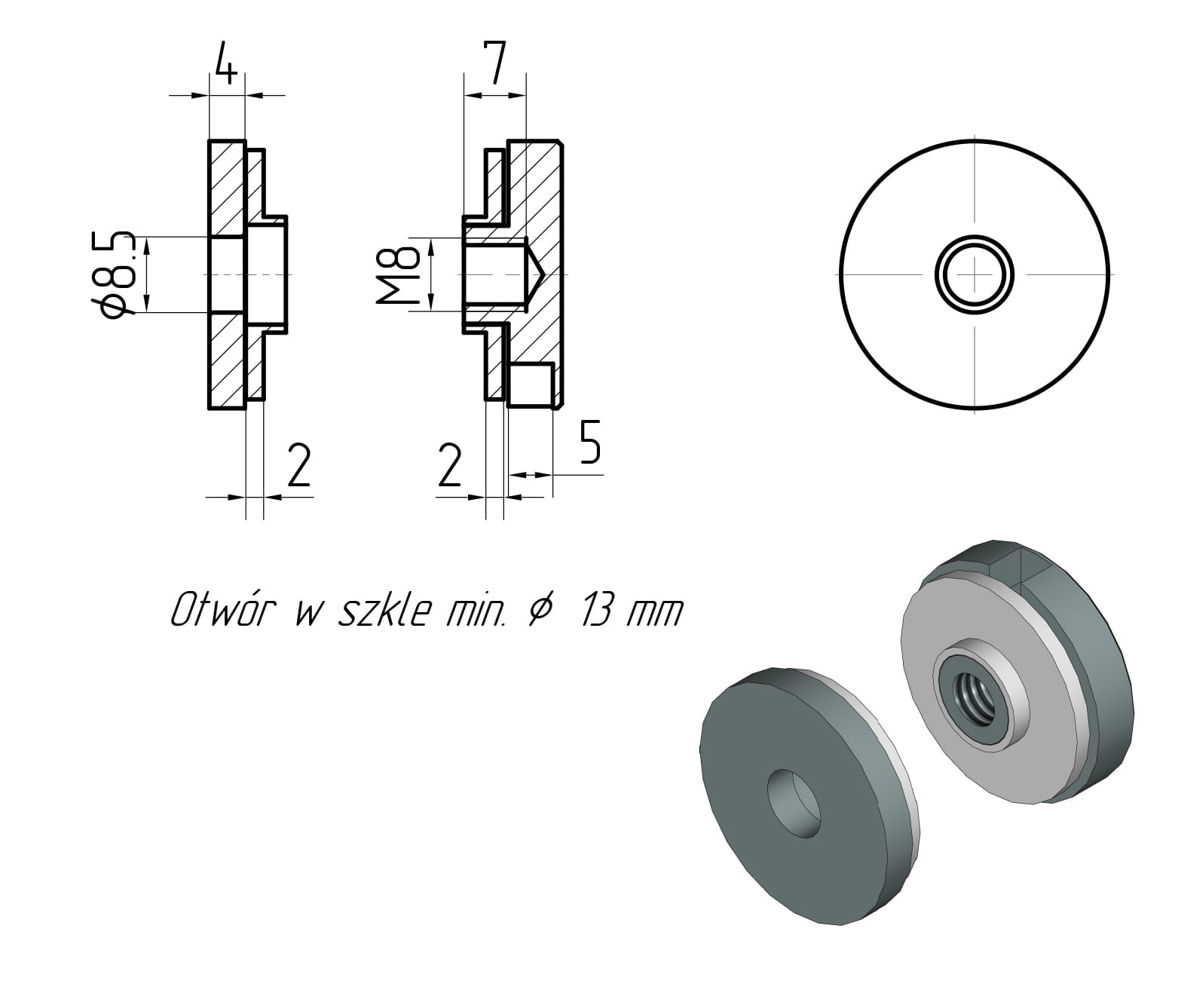 • Распорная втулка L = 4 мм со сквозным отверстием диаметром 8,5 мм