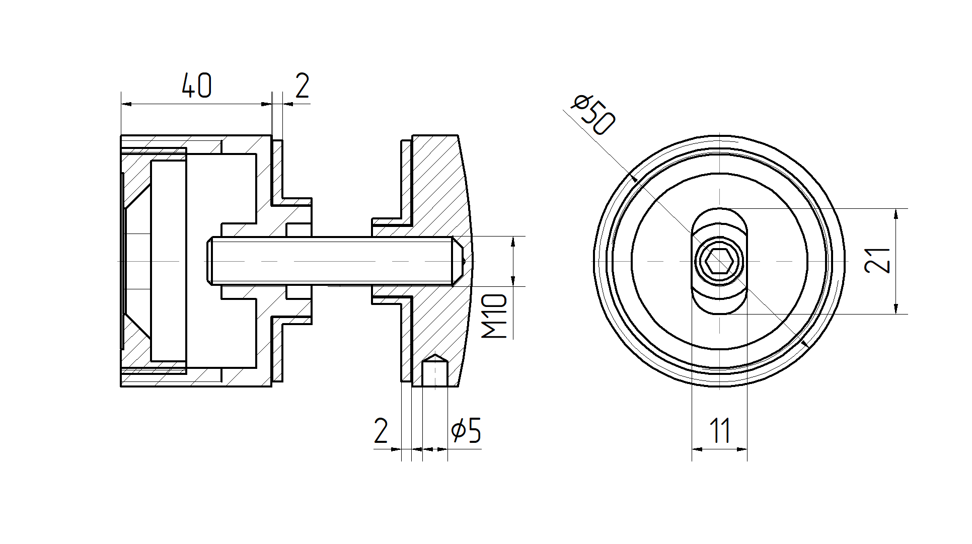 Точечный стеклодержатель ø50мм/дист. 40мм с регуляцией, AISI 316, ШЛИФ