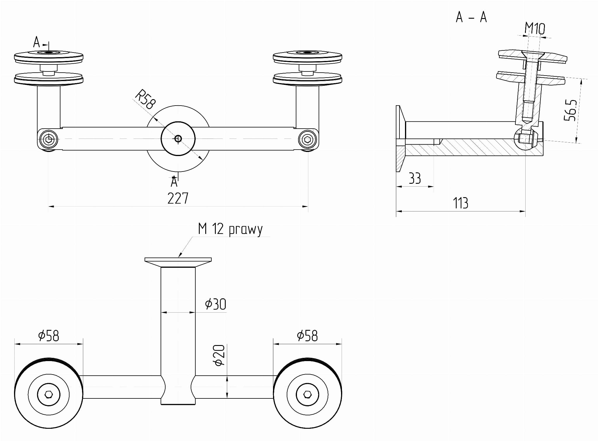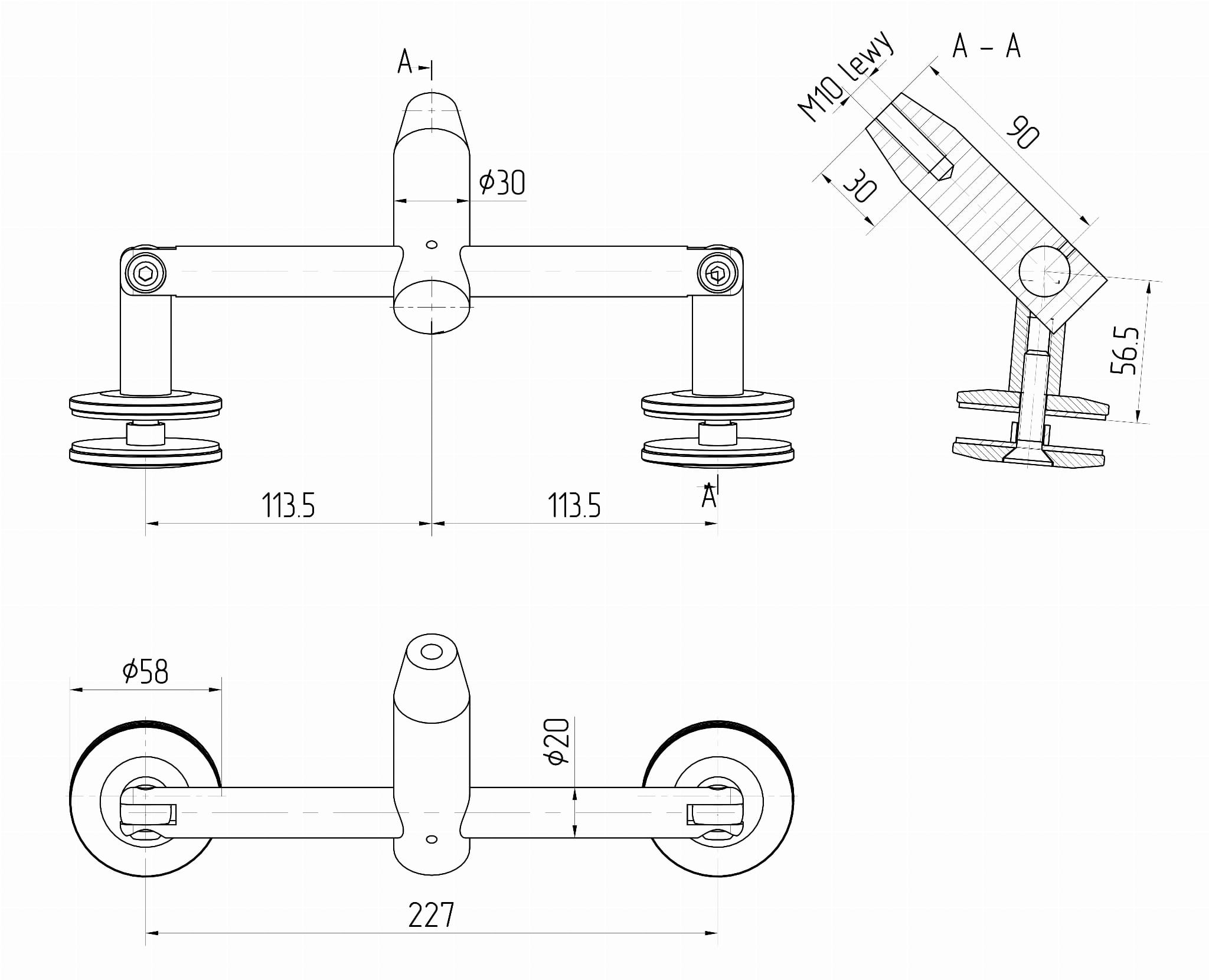 • Держатели для стекла ø58 мм.