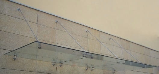 • Максимальное расстояние между натяжениями для крепления стеклянного навеса : 1200 мм