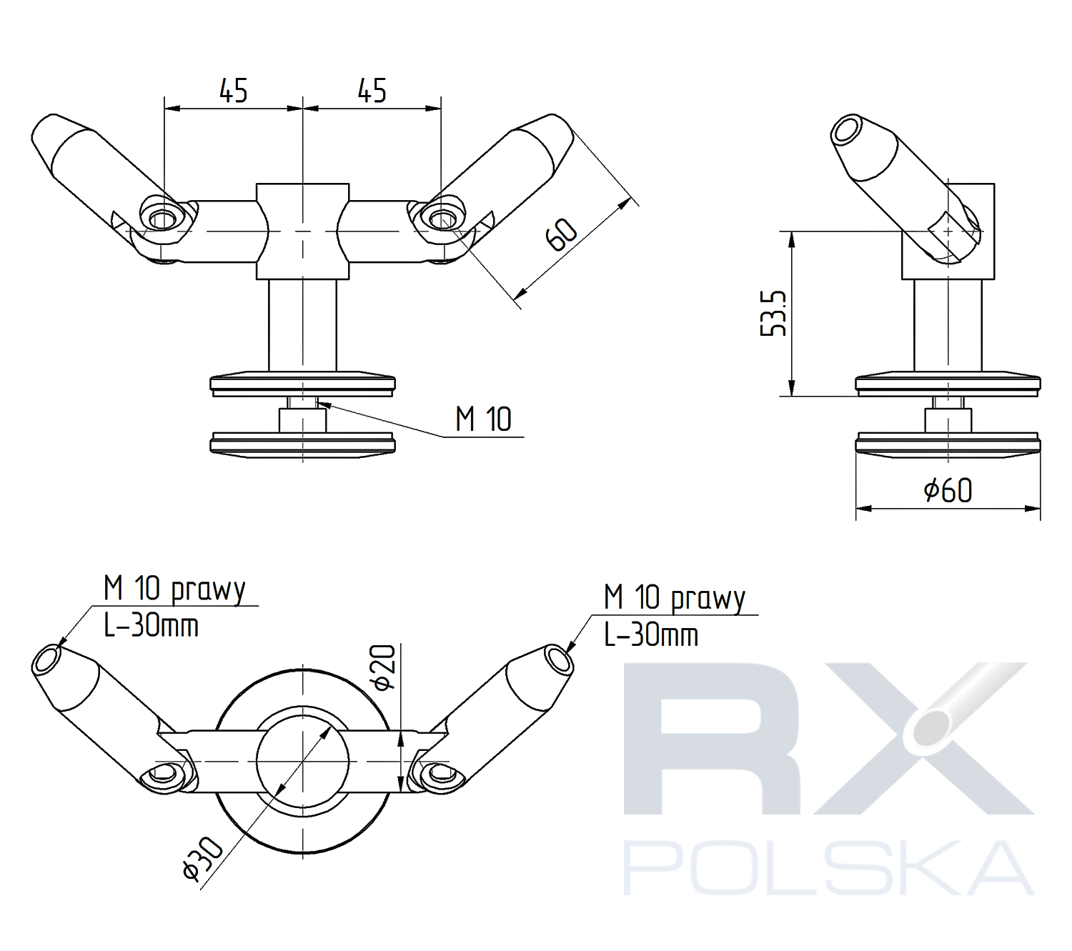 CNP крепление козырька SINGLE-V Ø 60мм, AISI 304, ШЛИФ