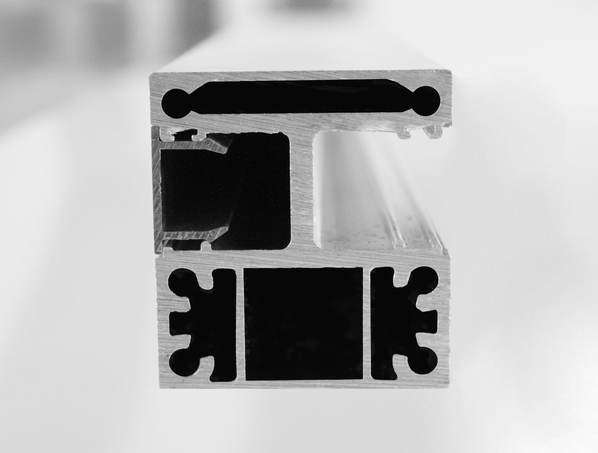 Столб изготовлен из алюминиевого профиля 55х50мм, необработанная поверхность (предназначена для порошковой покраски).