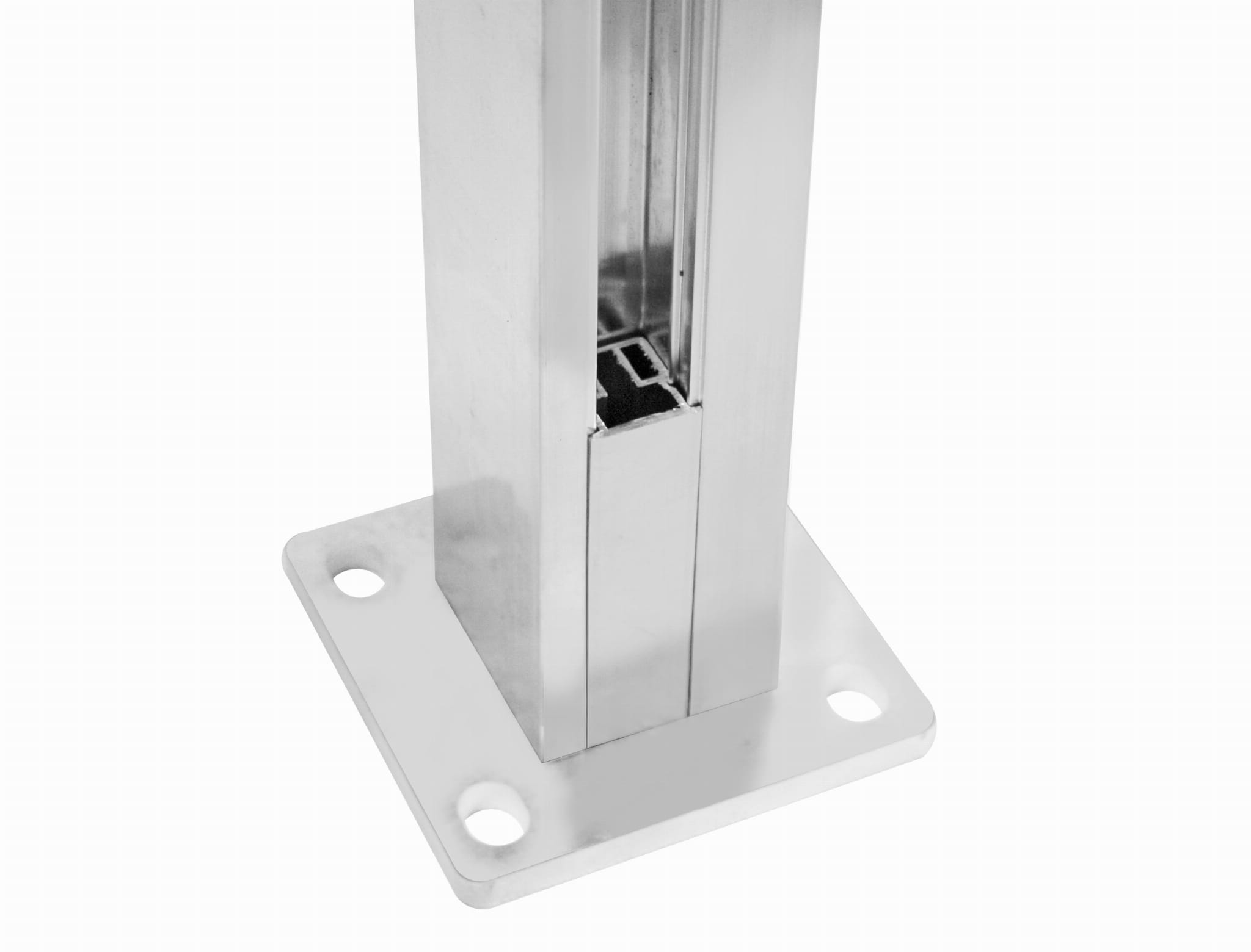 Столб изготовлен из алюминиевого профиля 55х50мм, необработанная поверхность (предназначена для порошковой покраски).