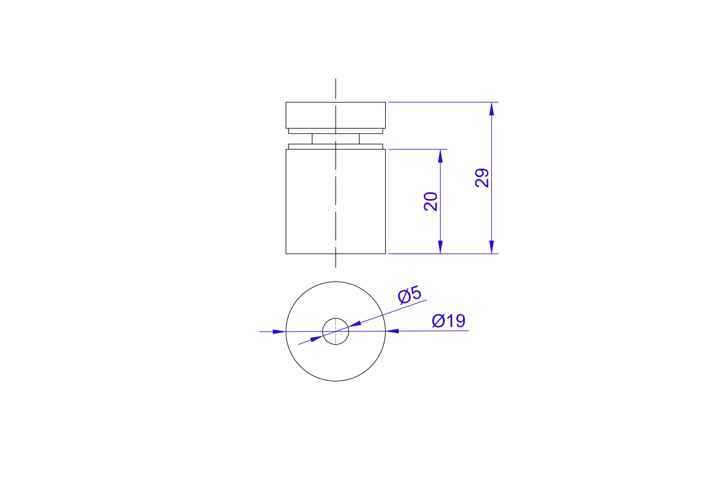 Точковий склотримач ø19 мм/дист. 20 мм, AISI 304, ПОЛІРОВАНИЙ